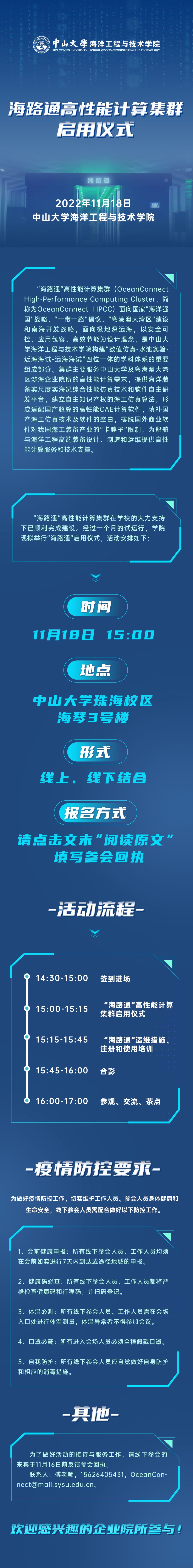 导航痕迹 中山大学海洋工程与技术学院 学院动态 诚邀莅临 | 海路通高性能计算集群启用仪式 扫描此二维码分享 诚邀莅临 | 海路通高性能计算集群启用仪式 发布人:张皓月 发布日期:2022-11-16 点击填写参会回执:https://g.h5gd.com/p/8tckpph3#6