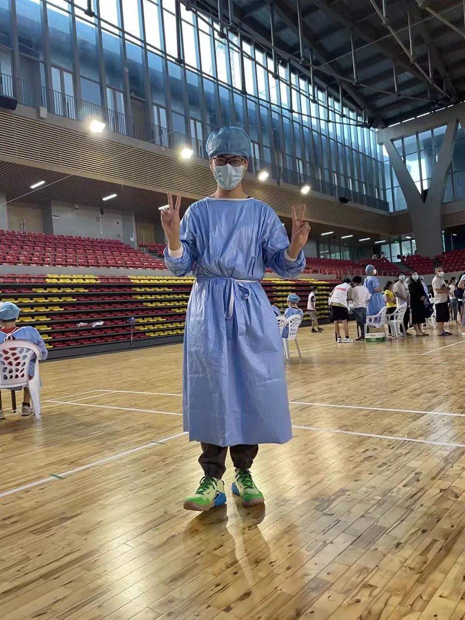 杨宗源同学作为核酸检测志愿者