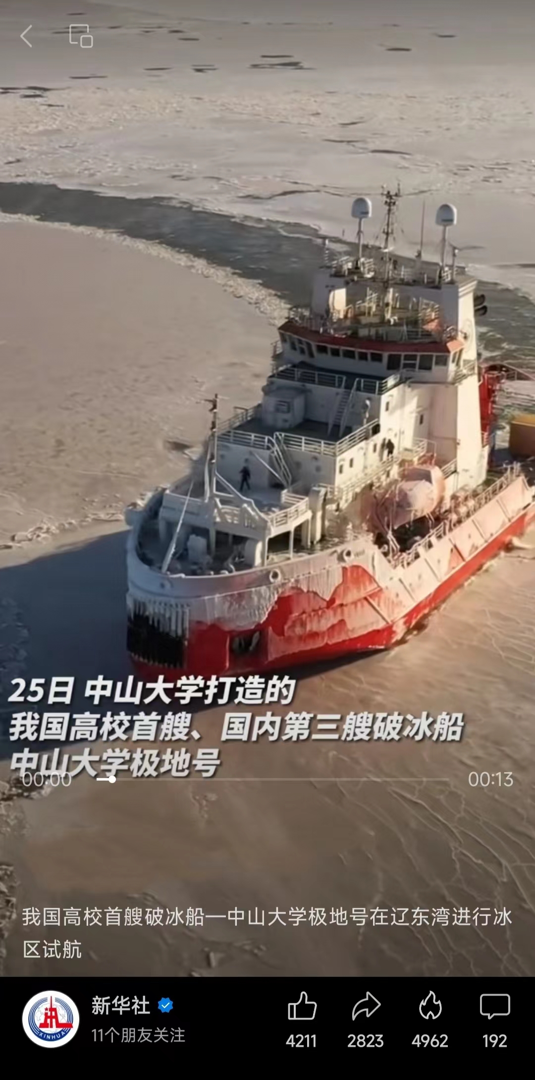新华社对极地号渤海试航进行了报道